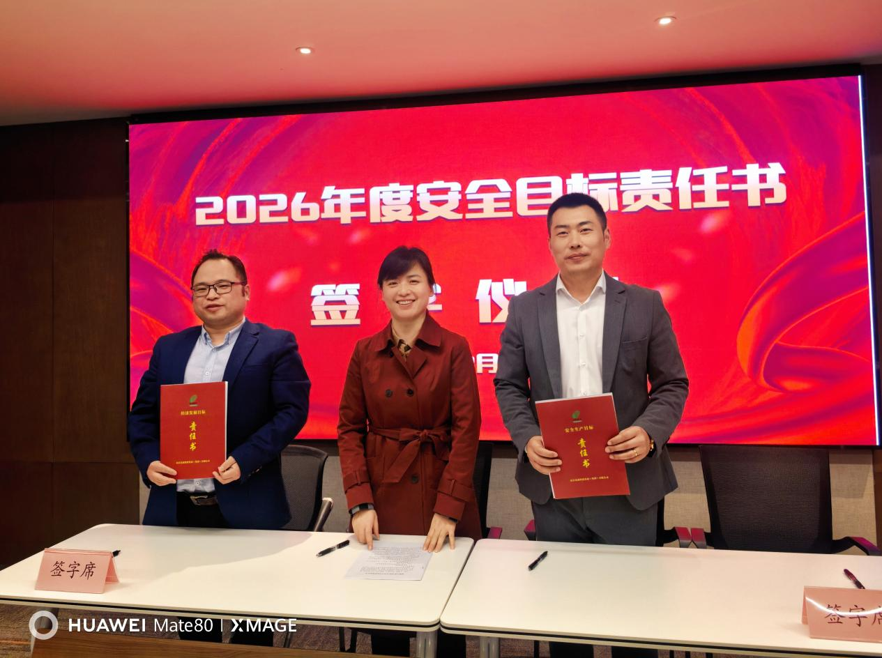 ↑潘麗副總經(jīng)理與有關(guān)部門負(fù)責(zé)人簽訂安全目標(biāo)責(zé)任書
